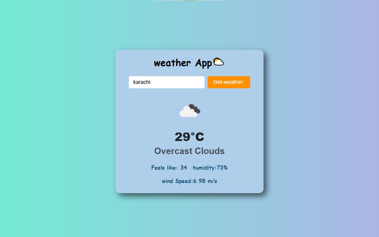 Built with HTML, CSS & JavaScript. Shows real-time weather for any city. Clean UI and dynamic updates.